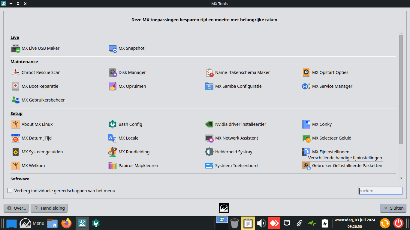 Voor meer info kijk eens op de Website van MX Linux of neem contact met mij op via het contactformulier.